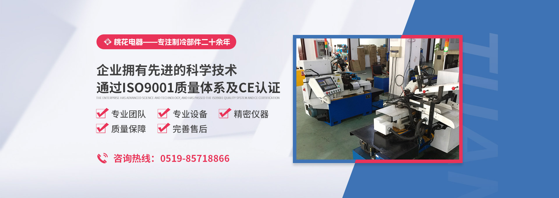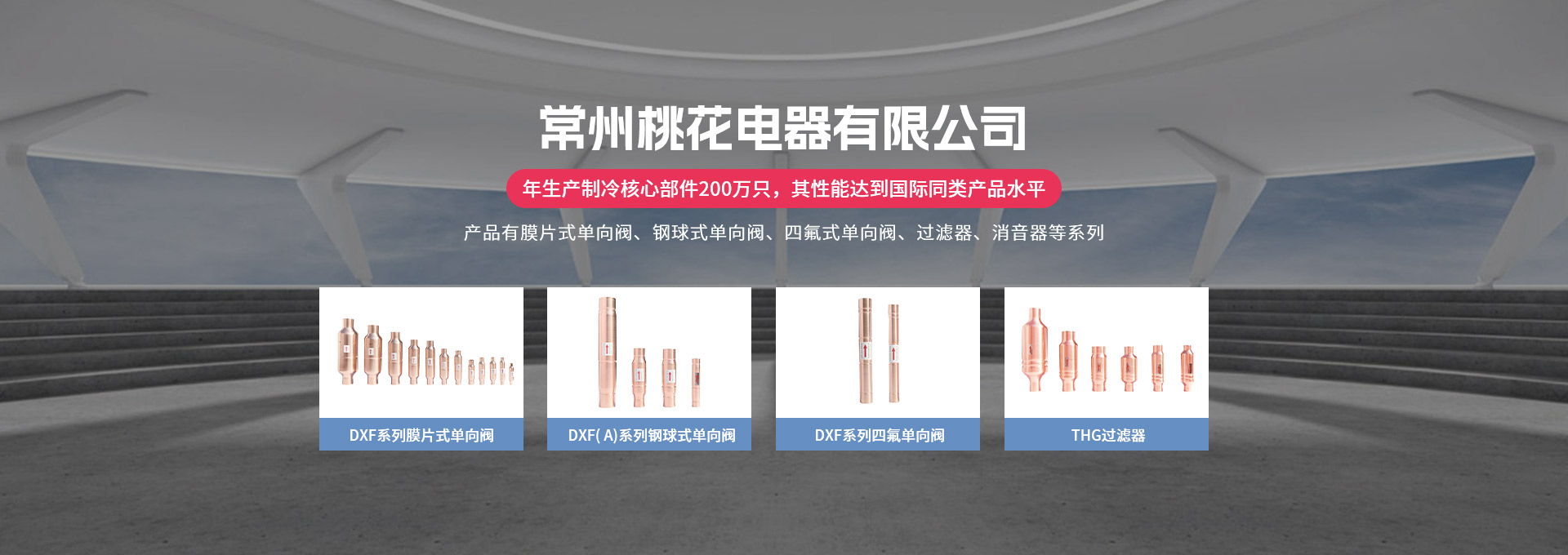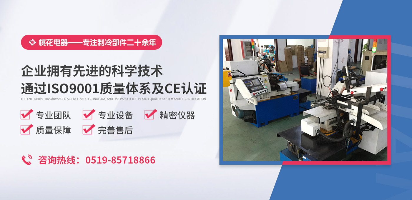 常州桃花電器有限公司地處中國長江“金三角”之稱的上海至南京高速公路、城際高鐵、常州高新經濟技術開發(fā)區(qū)路段,交通便利、技術力量十分雄厚。它是集研究、開發(fā)設計、制造和經營制冷核心部件的企業(yè),主要生產中央空調上使用的制冷部件。產品有膜片式單向閥、鋼球式單向閥、四氟式單向閥、過濾器、消音器等系列。年生產制冷核心部件200萬只,其性能達到國際同類產品水平。 企業(yè)擁有先進的科學技術、國際先進的生產加工設備和精密的檢測儀器,并已通過ISO9001質量體系及CE認證,公司歷史悠久,2000年起,經過長期積累、沉淀,經驗豐富,從而保證了產品的高質量、高性能、高耐用性。企業(yè)產品在國內外市場具有較高的知名度,深受眾多中外品牌制冷客商的好評。主要客戶有約克、麥克維爾、美的、開利、特靈、頓漢布什、清華同方、天加等.并出口北美、歐洲、東南亞等地區(qū)?! 「咂焚|產品是企業(yè)的保證,周到服務是合作友誼的承諾,企業(yè)本著“求